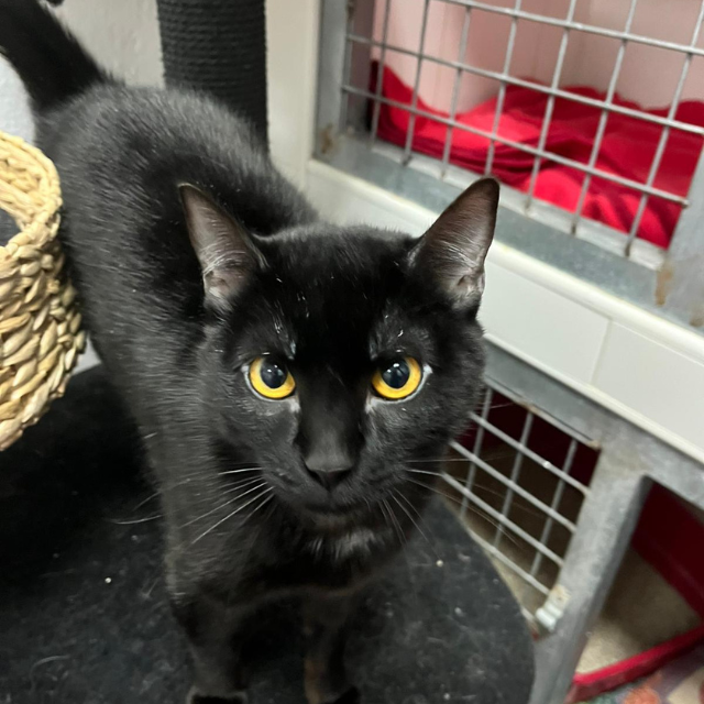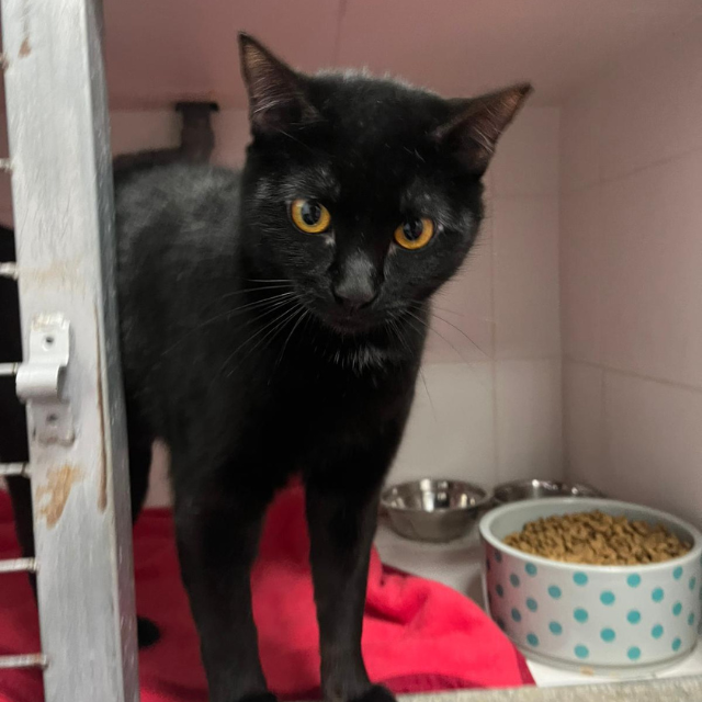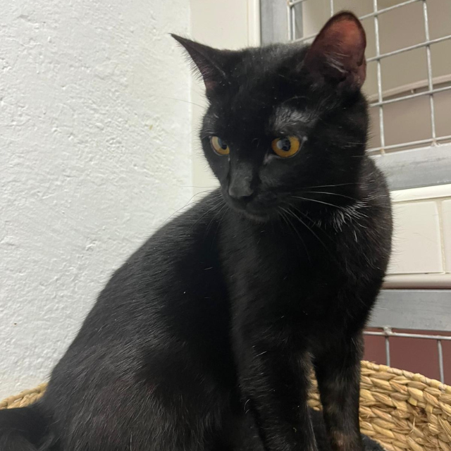 Hola, soy Flow. Negra. Sí. ¿Mala suerte? Solo si consideras mala suerte enamorarte de mí. Me abandonaron y ahora existe el miedo de que me vuelva “invisible” por mi color. Porque claro, aún hay quien piensa que los gatos negros damos mala suerte… cuando en realidad lo único que damos son cabezazos de cariño y ronroneos nivel experto. Si cruzo por delante de ti, no te pasa nada raro. Bueno sí… probablemente acabes adoptándome.